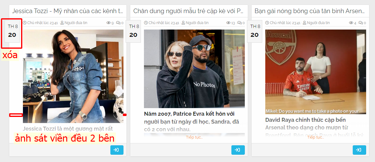 Trang chủ mình toàn ảnh, nên chỉ cần mặcđịnh là được rồi. Tiện thể cho hỏi mình muốn xóa cái blog ngày ở bài viết trang home thì xóa ở đâu Admin. Và làm cho ảnh nó full ra viền nữa.