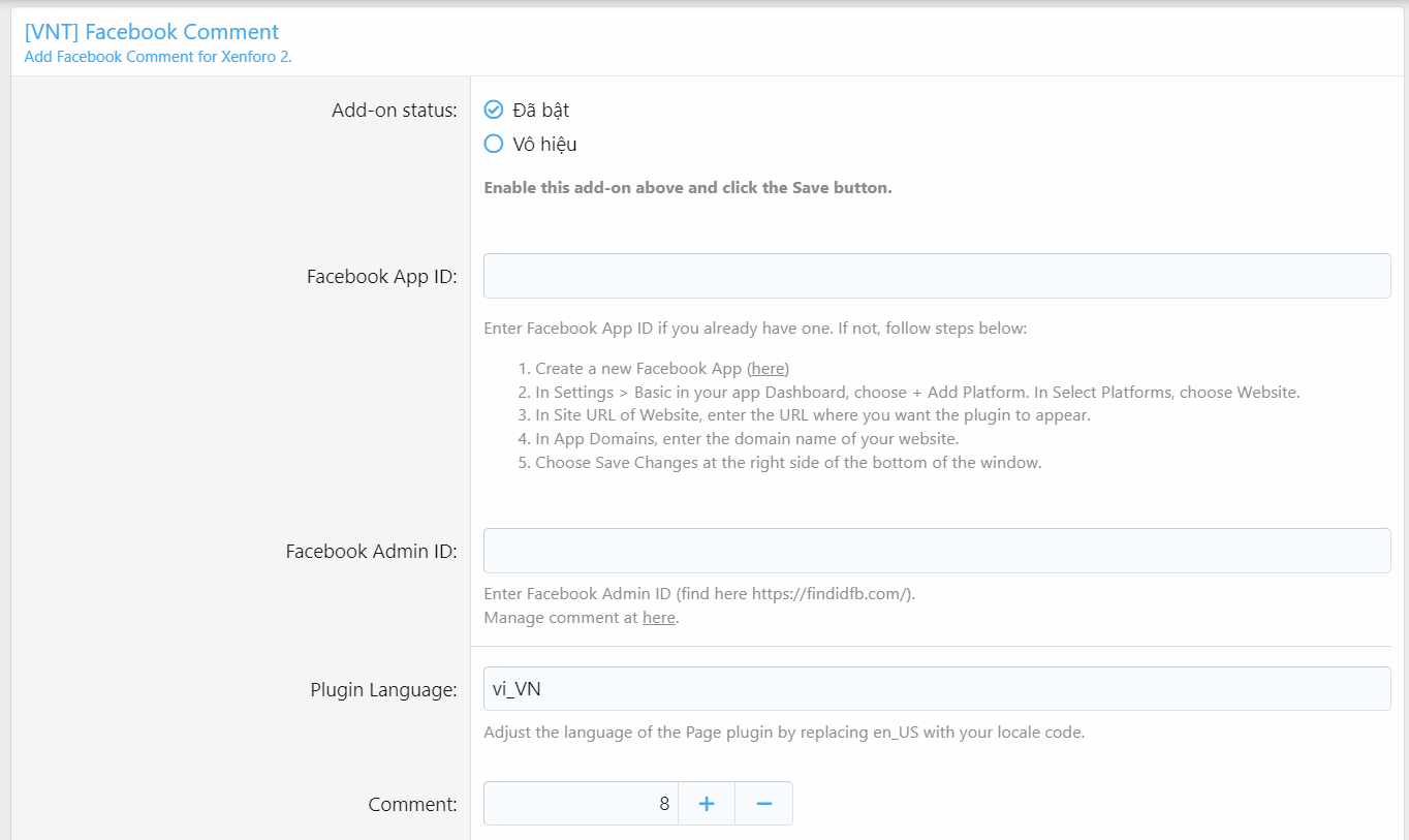 [VNT] Facebook Comment - Thêm bình luận facebook cho Xenforo 2