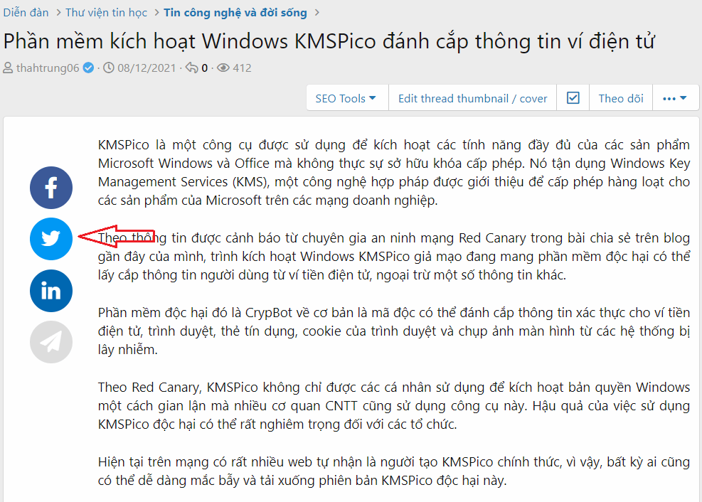 Việc chia sẻ lên mạng xã hội lúc này là rất dễ dàng và thuận tiện, thay vì phải cuộn chuột xuống cuối trang mới thấy các biểu tượng mạng xã hội như mặc định của Xenforo.